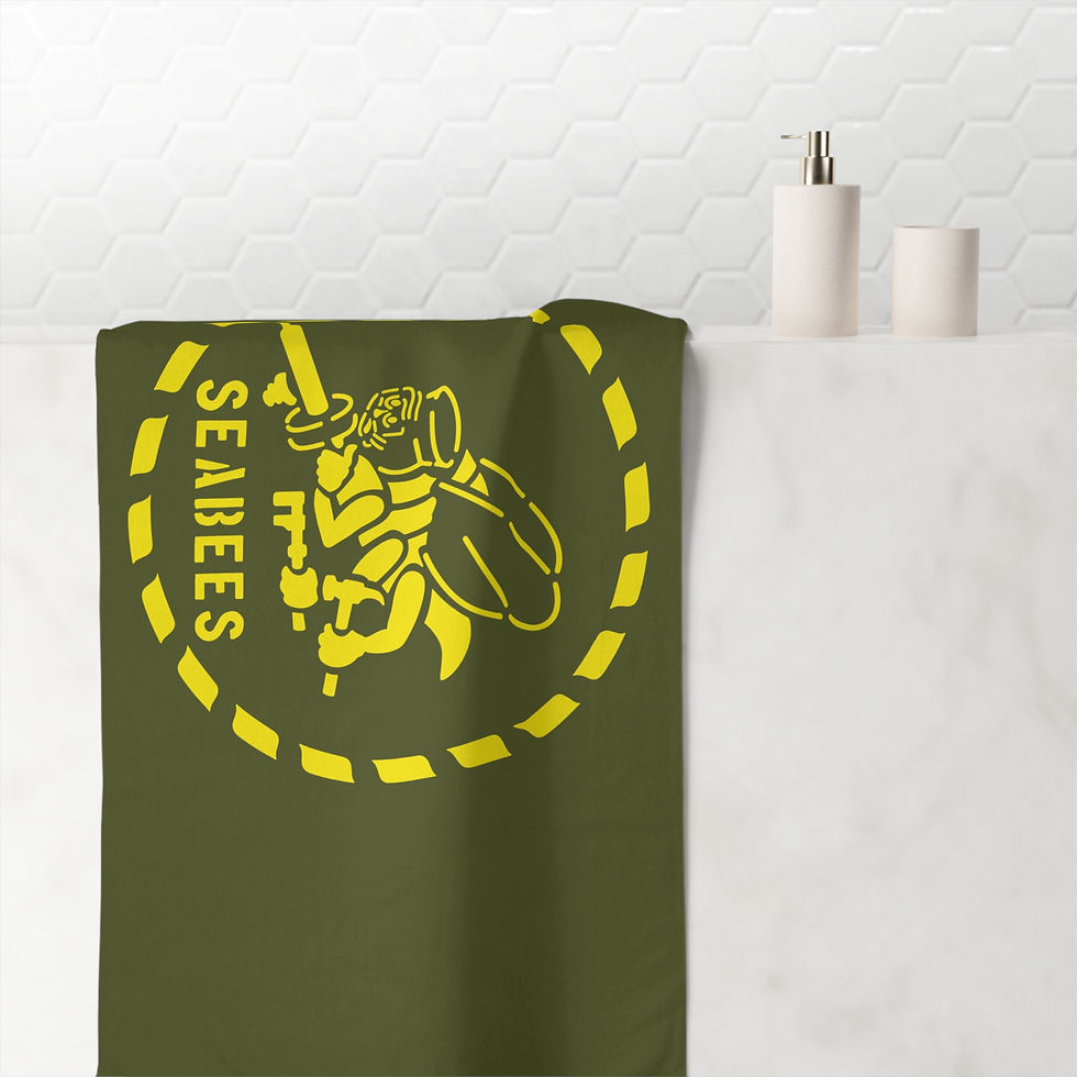 CESE Seabee Stencil Mink-Cotton Towel Bathroom Veteran OD Green Towel
