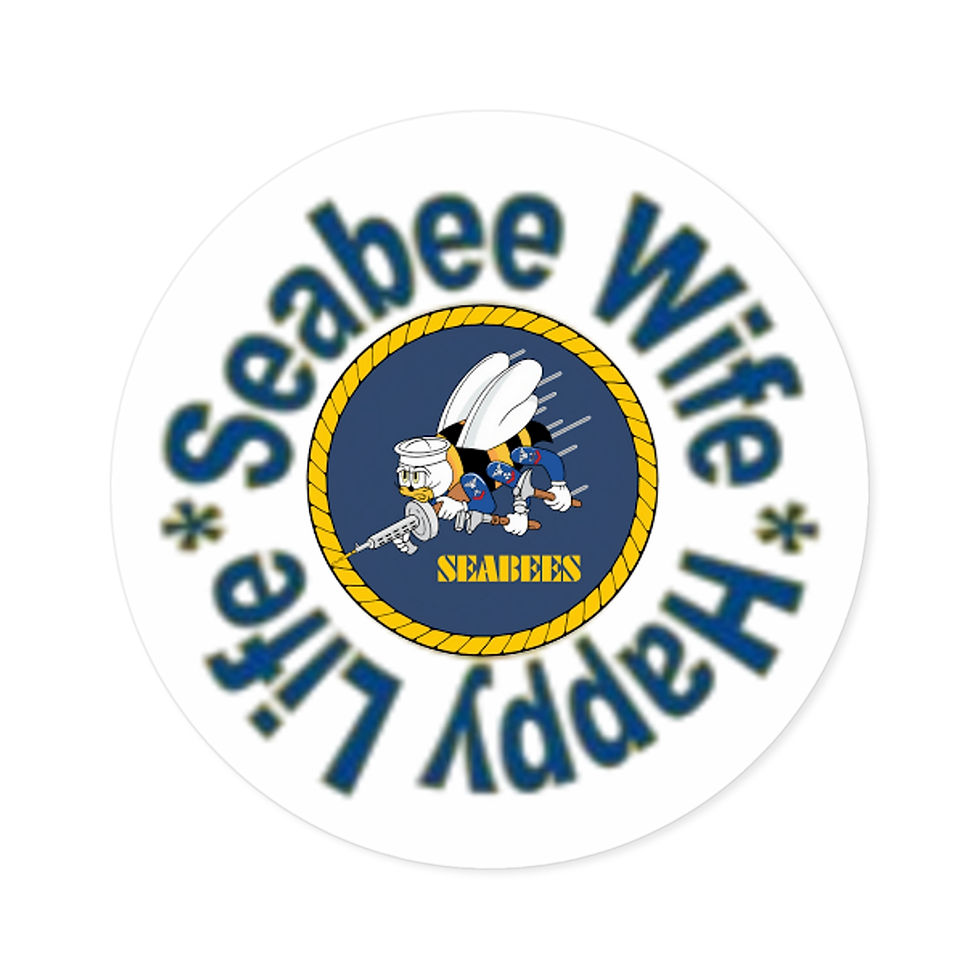 White Seabee Wife Happy Life Round Stickers, Indoor or Outdoor