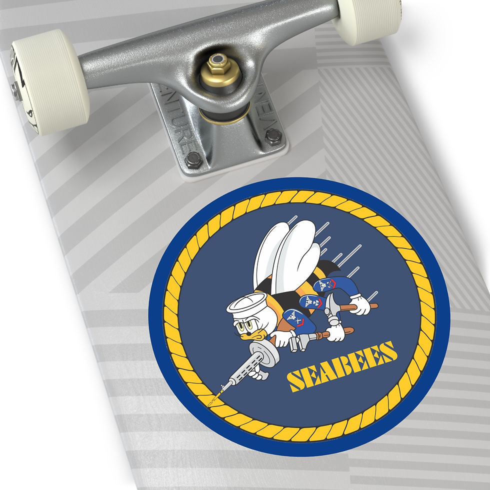 Seabees Round Vinyl Stickers Gold Rope Original Navy Outdoor Indoor Bumper Decal