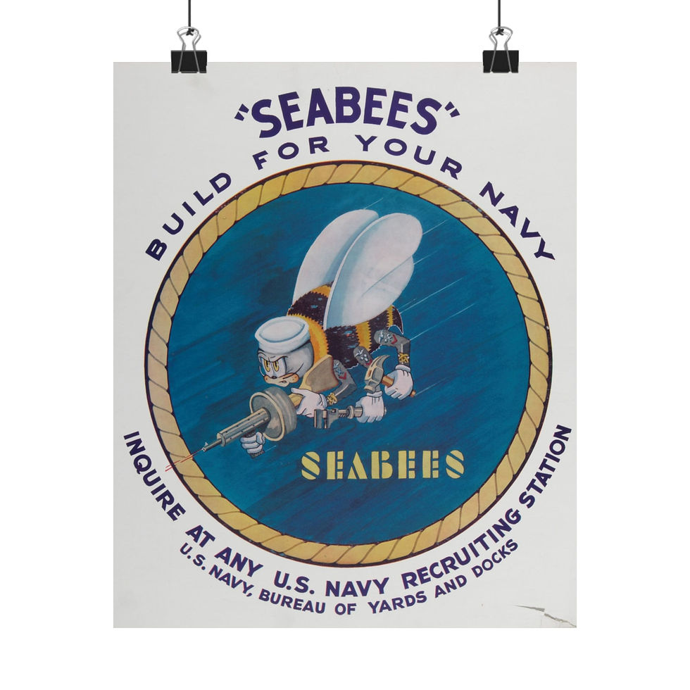 Poster Vintage Seabees Battalions We Build We Fight Vintage